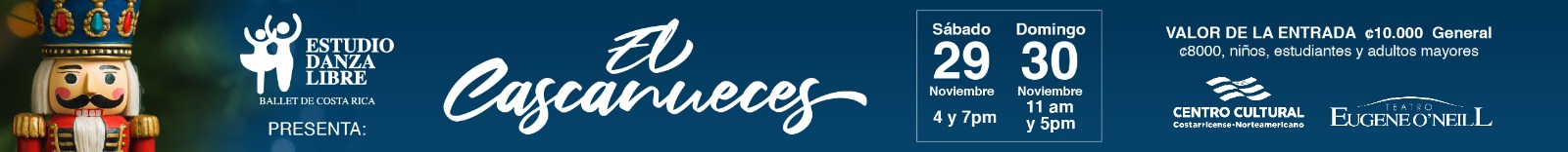 El Cascanueces es un Ballet con temática navideña, estrenado en 1890. La hermosa musica es de P. I. TCHAIKOWSKY. En la noche de navidad la familia Stalbaum a preparado una fiesta maravillosa para su hija Clara y el travieso Fritz. Entre los invitados está el misterioso doctor Droselmeyer qué con su magia, sus muñecos Mecanicos y un hermoso Cascanueces, creará la aventura para sus queridos Clara y Fritz. El Ballet de Costa Rica en su 40 Aniversario, escenifica este Ballet con más de 50 artistas entre bailarines y actores en escena.